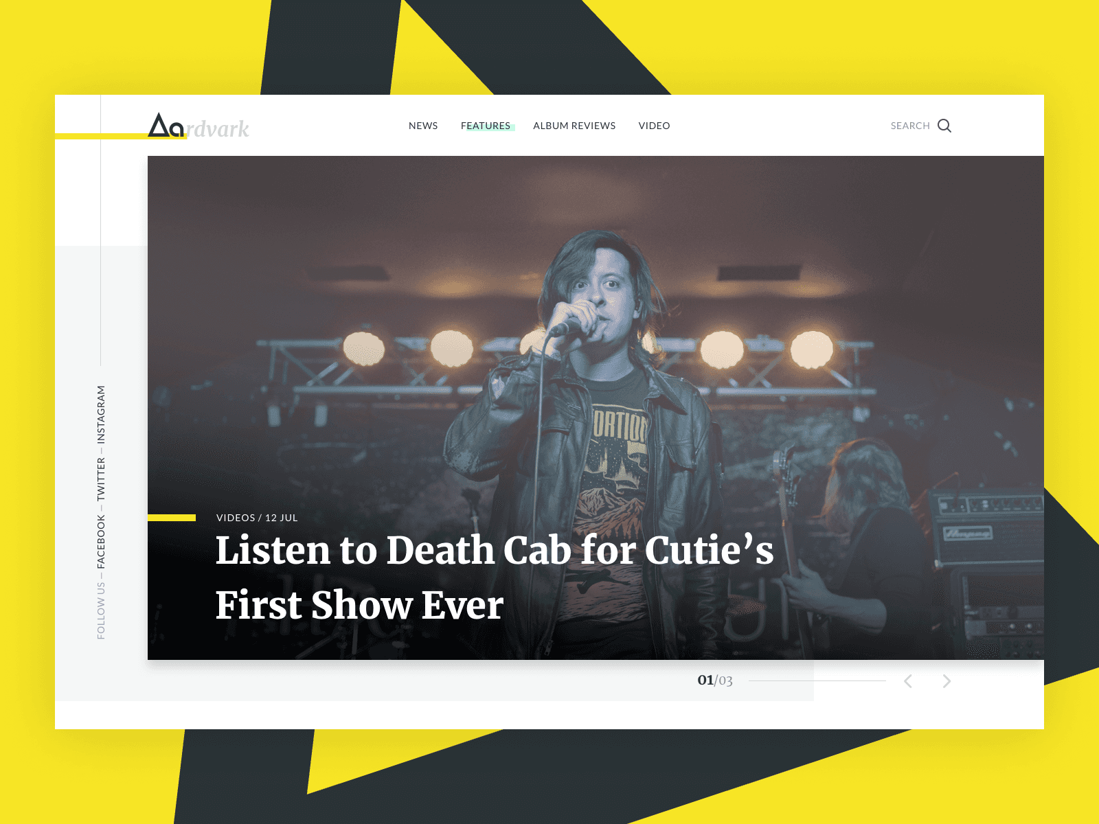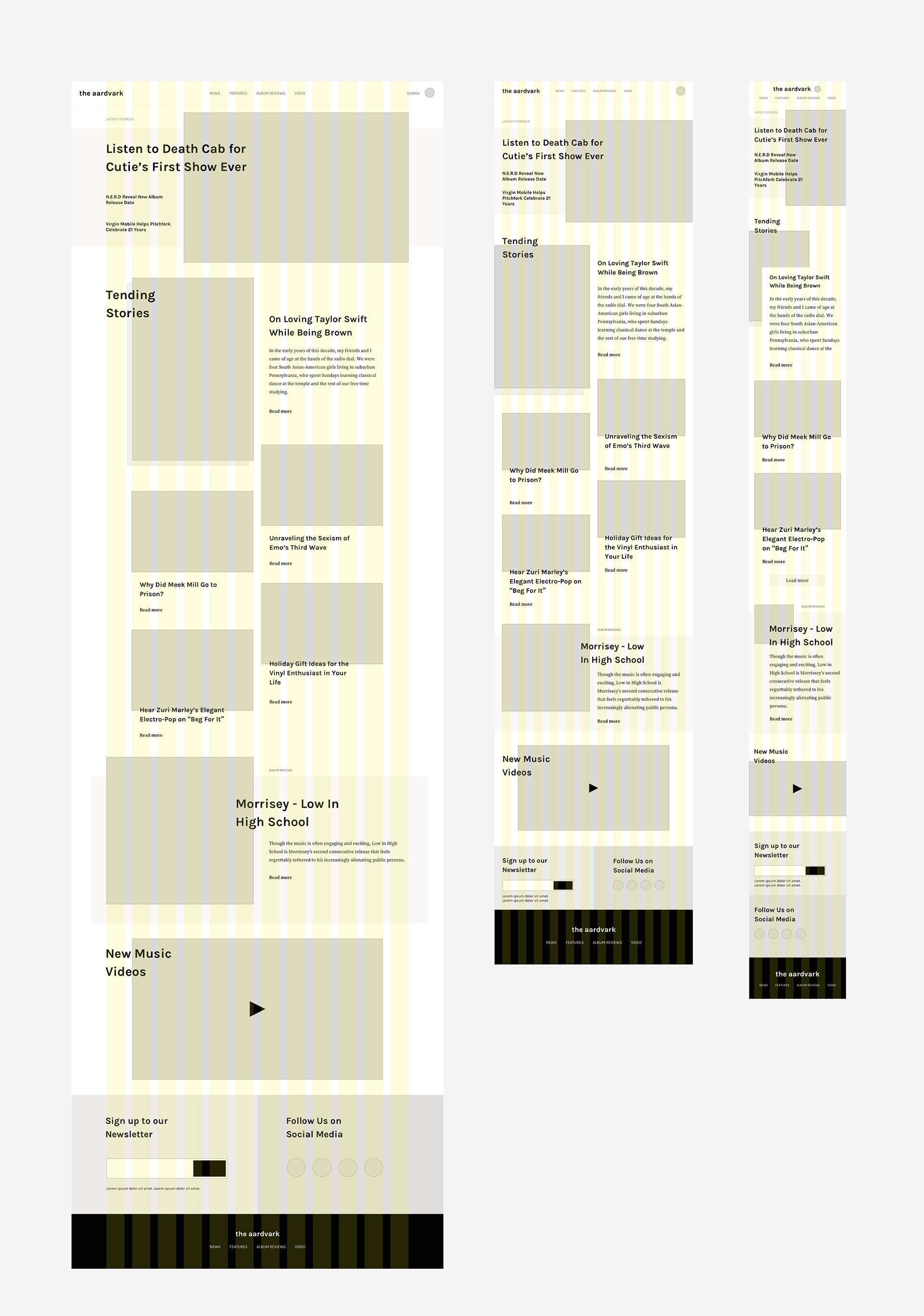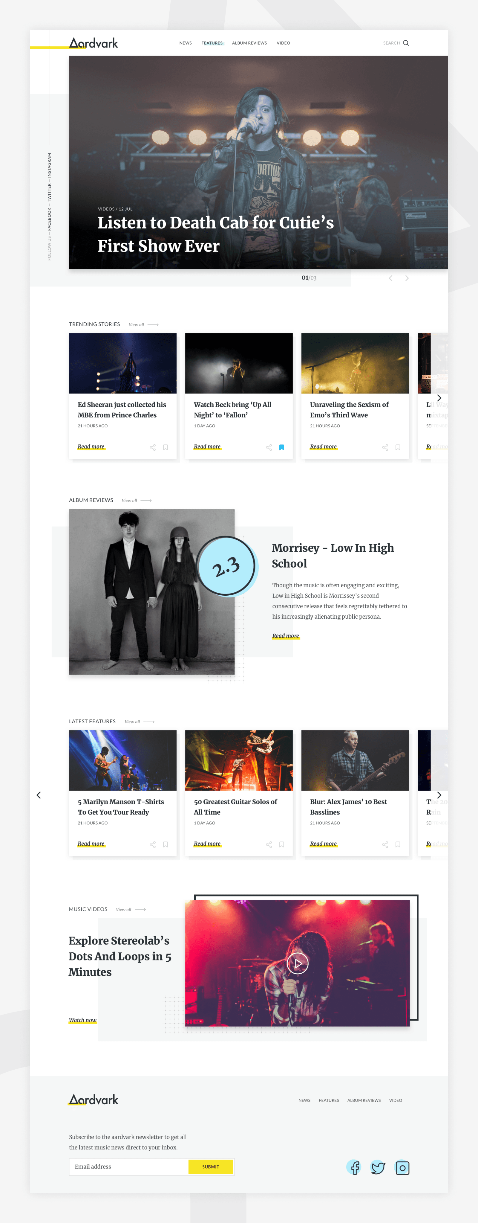 UI design for a music news publishing website.